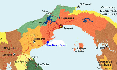 Playa Blanca is located on the southern coast of Panama on the calm warm waters of the Pacific Ocean. The area is called the dry arc of Panama due to the limited amount of rain this region gets during the months of November thru March.